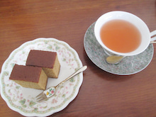 ハーブティーと 黒糖カステラ